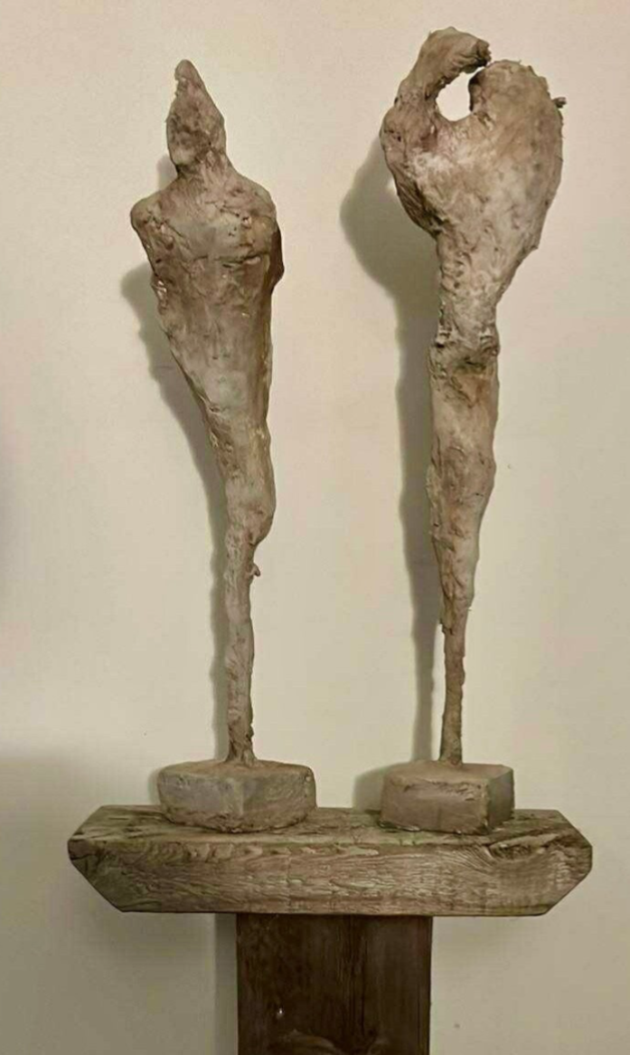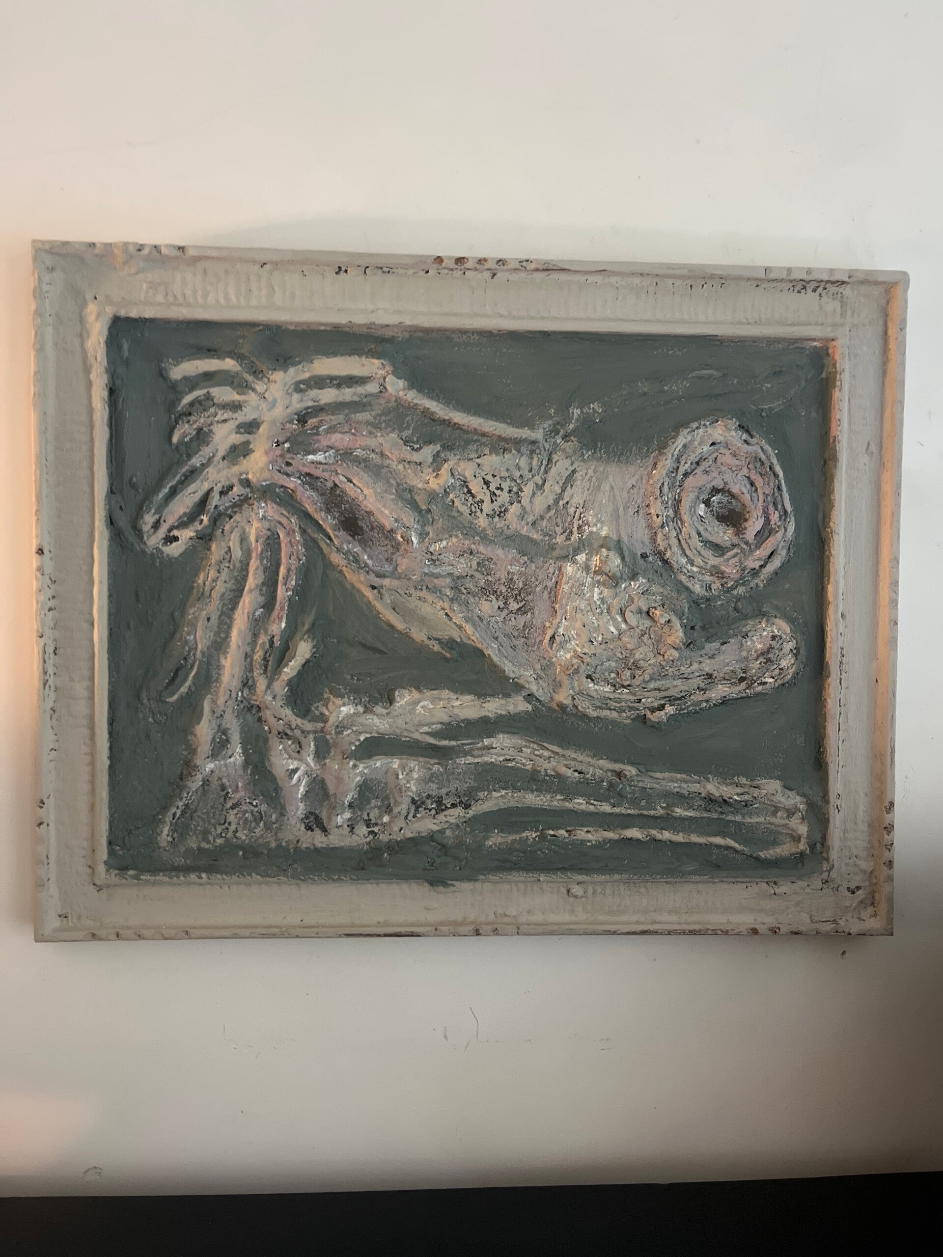 bewegende figuren met Kalkpasta vaste structuur op canvas.